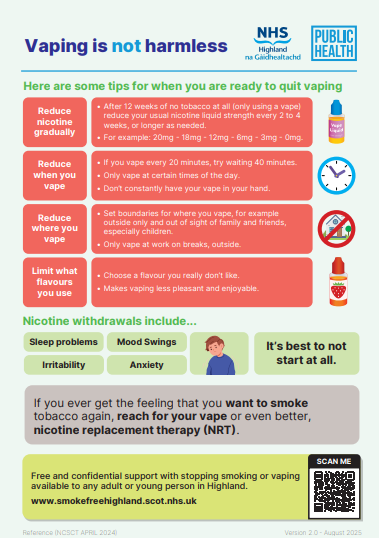 The Smoke-Free Service leaflet can be ordered free from the Highland Information Resource Service (HIRS).